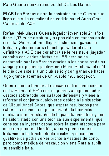 Rafa Guerra viene para reforzar el equipo en el tono defensivo y tratar de suplir la sensible baja de Cabral.